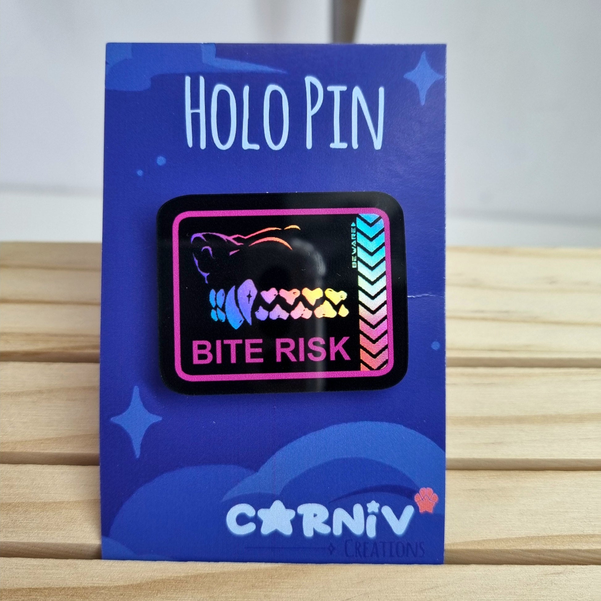 Acrylic Pin Holographic: Bite Risk Pink